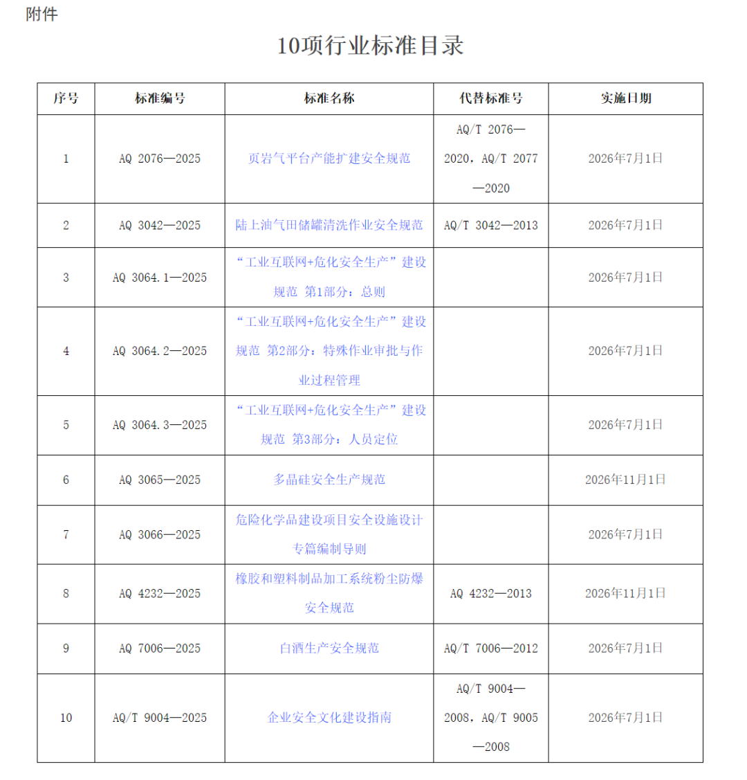 中華人民共和國應急管理部批準《頁巖氣平臺產能擴建安全規(guī)范》等10項行業(yè)標準(標準文本附后),現(xiàn)予公布。