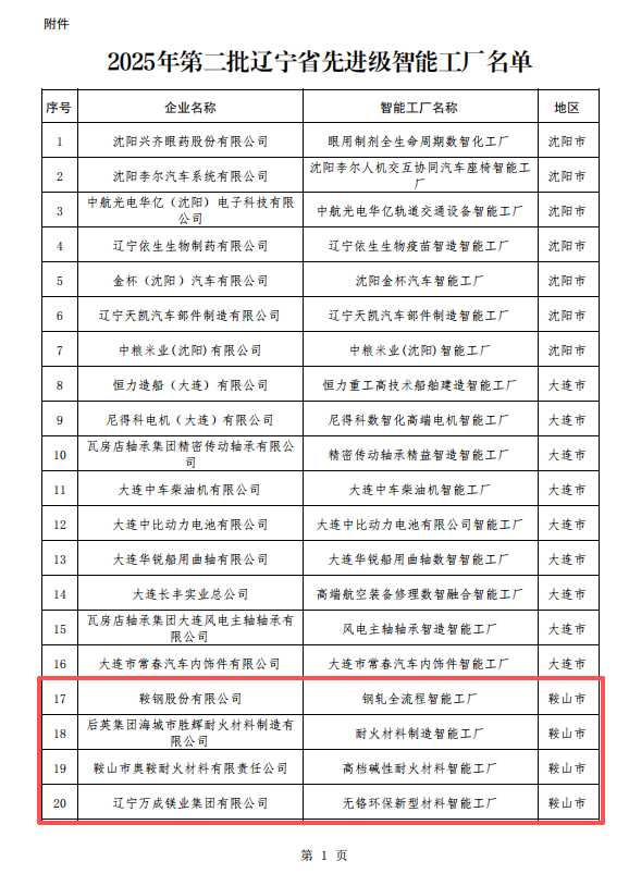 附件:2025年第二批遼寧省先進(jìn)級(jí)智能工廠名單