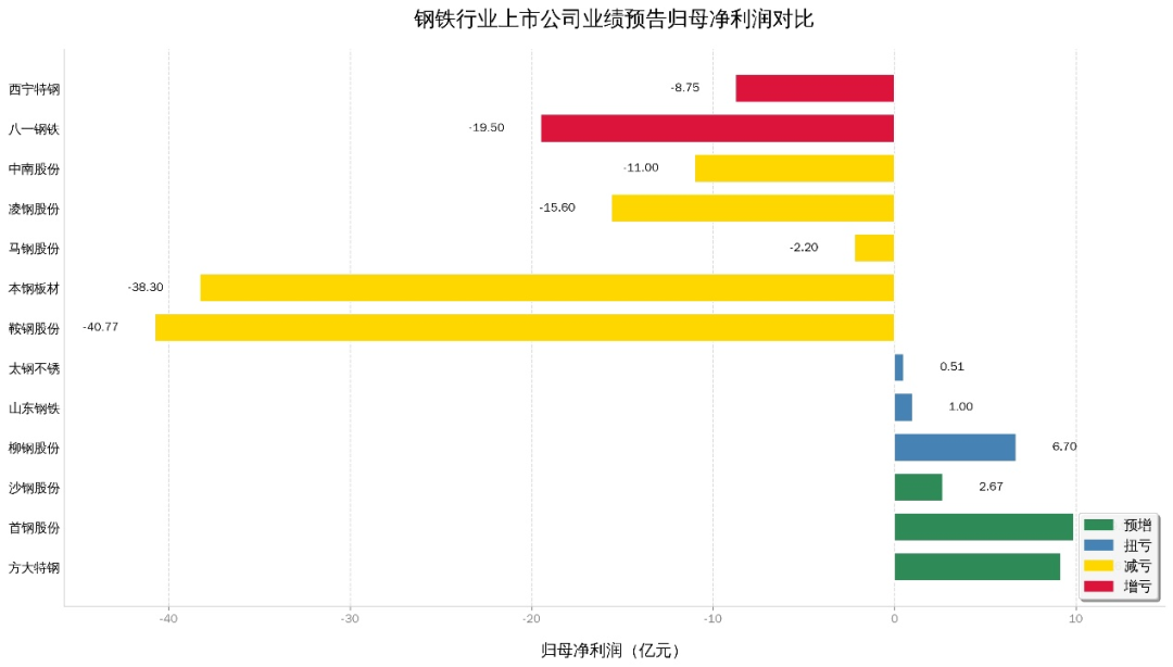 圖4 上市鋼企業(yè)績(jī)預(yù)告歸母凈利潤(rùn)對(duì)比