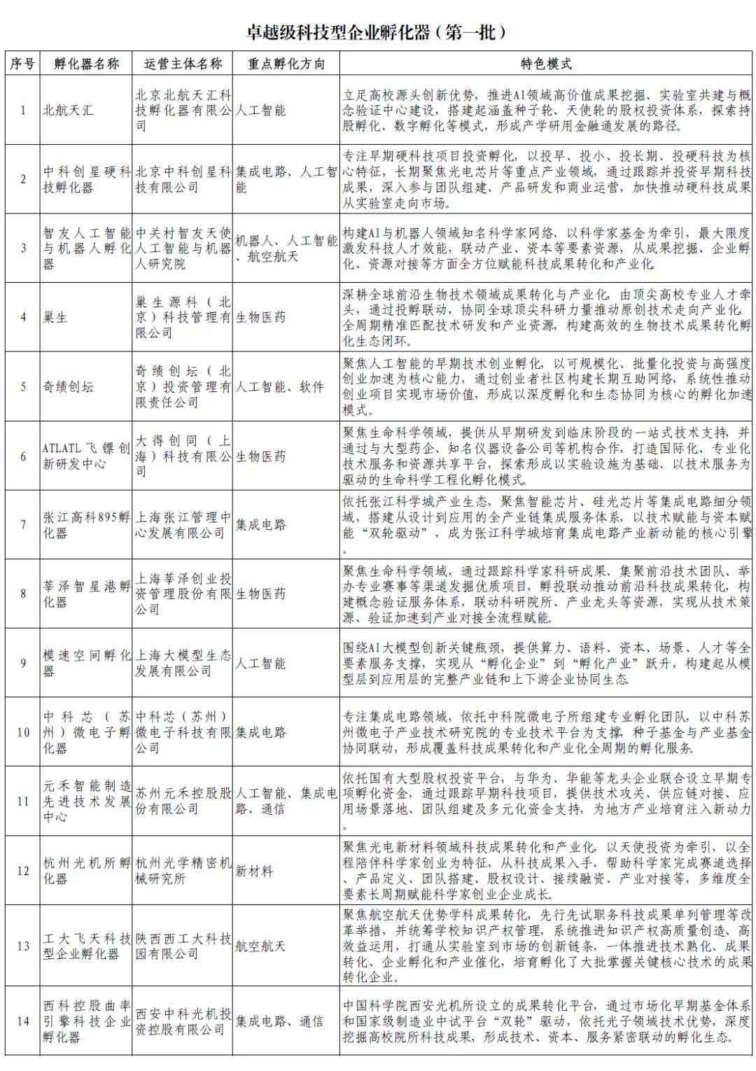 卓越級(jí)孵化器:對(duì)標(biāo)國(guó)際,打造標(biāo)桿。首批14家孵化器入選,突出“強(qiáng)產(chǎn)業(yè)屬性、強(qiáng)服務(wù)功能、強(qiáng)人才牽引、強(qiáng)投資賦能、強(qiáng)加速效應(yīng)”特征,在高校科技成果孵化、前沿技術(shù)孵化、投資孵化、產(chǎn)業(yè)孵化等方面具有鮮明特色和顯著優(yōu)勢(shì),旨在對(duì)標(biāo)國(guó)際一流,打造引領(lǐng)科技創(chuàng)新和產(chǎn)業(yè)創(chuàng)新融合的標(biāo)桿載體,為全國(guó)孵化器發(fā)展提供引領(lǐng)示范。