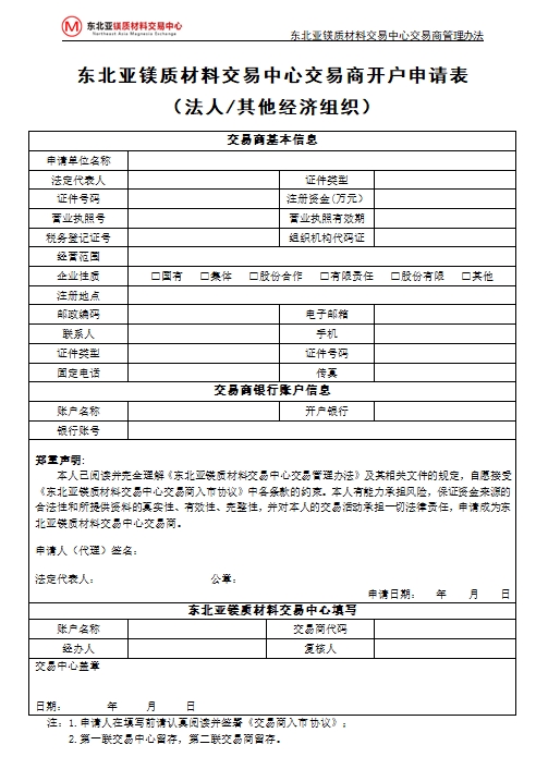 聲明:本交易商保證此委托書(shū)中代理人若有變更將書(shū)面通知東北亞鎂質(zhì)材料交易中心。